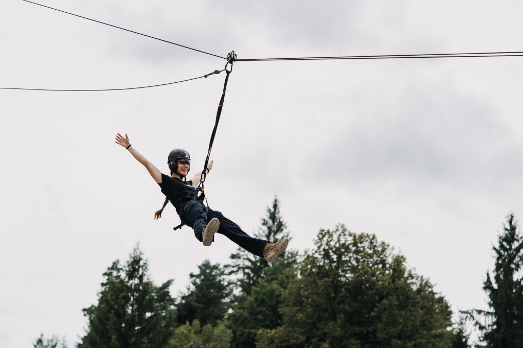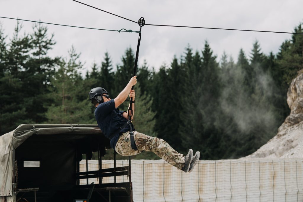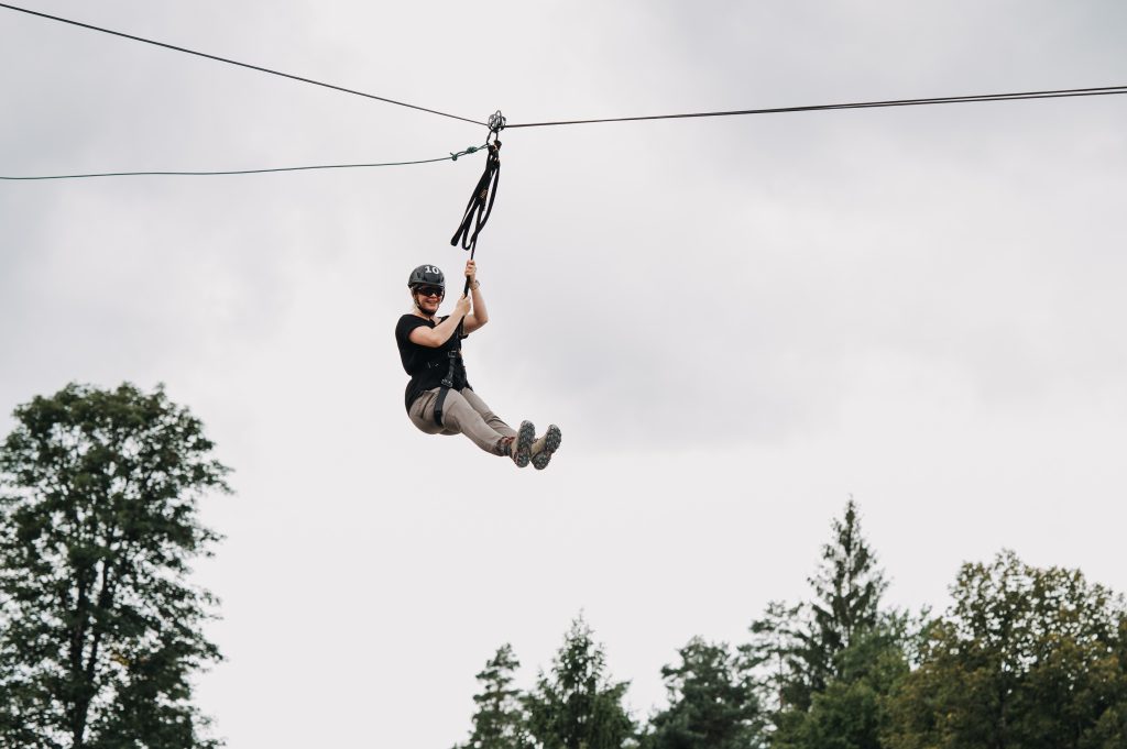 - Use of protective climbing equipment – zipline
