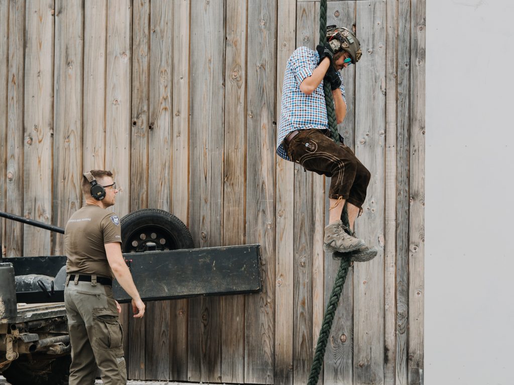 The program includes: lunch for participants (you can coordinate with our chef whether it will be a barbecue, a stew, or another dish of your choice), all necessary protective equipment, qualified instructors, firearms, targets, 70 rounds of pistol ammunition, 40 rounds of tactical rifle ammunition, 10 rounds of sniper ammunition and all required climbing gear for the shooting competition.
